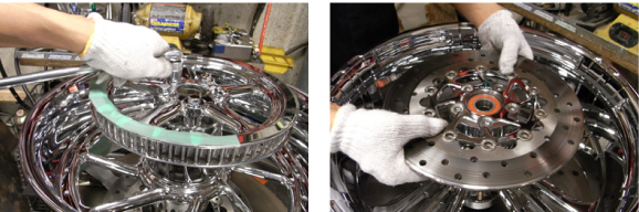 - 車体へホイルをセットさせます、シャフトにグリスを塗り組み込みます